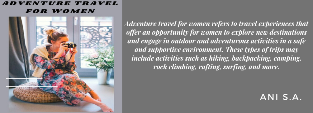 Adventure travel for women refers to travel experiences that offer an opportunity for women to explore new destinations and engage in outdoor and adventurous activities in a safe and supportive environment. These types of trips may include activities such as hiking, backpacking, camping, rock climbing, rafting, surfing, and more.